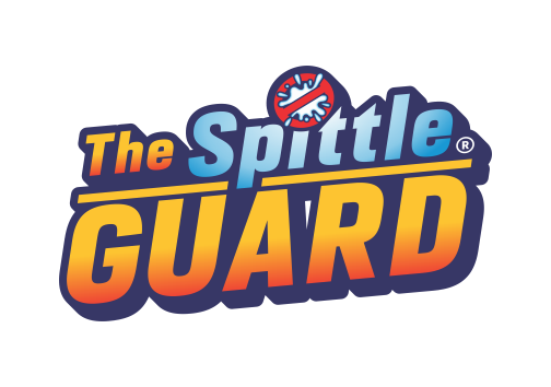 Spittle Guard is a hygienic brand identity featuring a "Stop" sign integrated with a splatter graphic to symbolize its mission of total protection. Representing a high-grade, transparent cake canopy that allows for safe candle-blowing, the logo is a bold, functional mark for a revolutionary household essential.